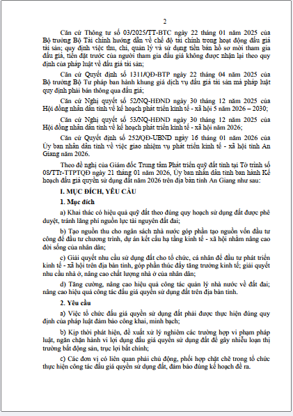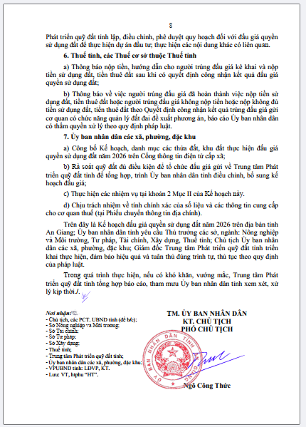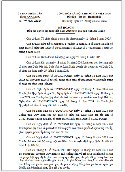 Kế hoạch Đấu giá quyền sử dụng đất năm 2026 trên địa bàn tỉnh An Giang